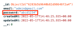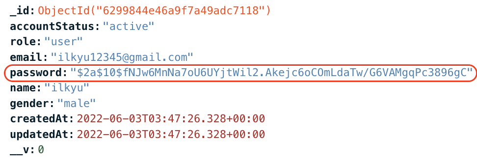 몽고DB에 위에 사용자에 요청받은 email과 password를 저장했습니다.